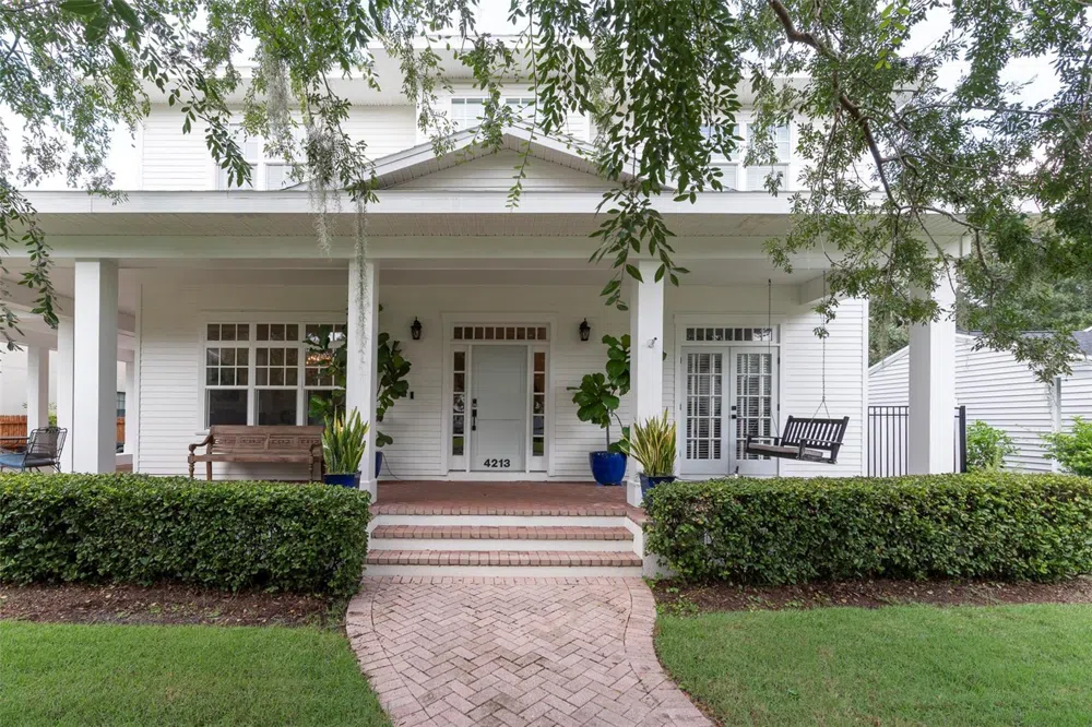 Stunning Southern Charm in South Tampa's Maryland Manors. Welcome to 4213 W Sevilla Street, a beautifully appointed 4-bedroom, 3-bathroom home nestled in one of South Tampa's most sought-after neighborhoods, Maryland Manors. Boasting over 3,500 sq. ft. of living space, this residence exudes timeless elegance with stately columns and an expansive wrap-around front porch, perfect for relaxing and enjoying the peaceful surroundings. Interior Highlights incl, First Floor: Step inside to find bamboo floors throughout the living areas and cork flooring in the kitchen. Soaring 10-foot ceilings create an airy and spacious feel. The kitchen is a chef's dream with two sinks, a large mahogany center island, and a cozy breakfast nook. Entertain with freedom to roam from the kitchen right into the open family room. Second Floor: Freshly updated with new carpet and featuring a screened-in covered porch, perfect for enjoying breezy evenings. The home is freshly painted, inside and out, and equipped with an alarm system for added security. Outdoor Features: The 9,000 sq. ft. lot offers a beautifully landscaped backyard, fully fenced with a combination of vinyl and metal for privacy. The back also features a spacious porch and patio—ideal for outdoor gatherings. Detached 2-car garage with electric vehicle charger as well as a porte cochere provides ample parking. Located in Maryland Manors, a serene and peaceful environment, this home is situated within some of Tampa's top-rated public schools: Mabry Elementary, Coleman Middle School, and Plant High School. Additionally, it's just a few blocks away from the newly opened Kenneth E. Adum PreK-8th Grade Magnet School. This home’s combination of classic Southern charm and modern conveniences makes it a standout in the market. With its prime location, beautiful interior finishes, and spacious outdoor living areas, 4213 W Sevilla Street offers a perfect blend of style, comfort, and family-friendly living. No flooding concerns during Milton and Helene.