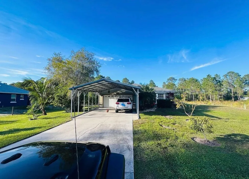 Charming 3-bedroom, 2-bath pool home situated on a private one-acre parcel in desirable Bay Lake Ranch—NO HOA. From the moment you enter the long driveway, the beautifully manicured lot and shrubs reflect the pride of ownership throughout the property. The property includes two driveways, providing ample parking and convenience. The spacious eat-in, open kitchen has been updated with granite countertops, wood-plank tile flooring, a dishwasher replaced two years ago, and a new disposal. Ceramic tile throughout the home provides easy, low-maintenance living. A formal dining room accommodates a large table for gatherings. The expansive open great room overlooks the pool area and includes additional space suitable for a desk or home office. Both bathrooms have been completely remodeled with modern finishes. Recent improvements include a new roof, A/C, and water heater in 2017, along with a newly resurfaced pool completed in 2025. The private patio and pool area are surrounded by woods, creating a peaceful setting. The property features a fully fenced yard throughout, along with a newer storage shed. This well-maintained home is move-in ready with minimal upkeep.